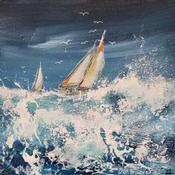 El artista utilizó la técnica Acrílico para crear esta pintura Pequeño formato sobre Cartón de estilo Figurativo sobre el tema Marine.
