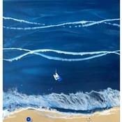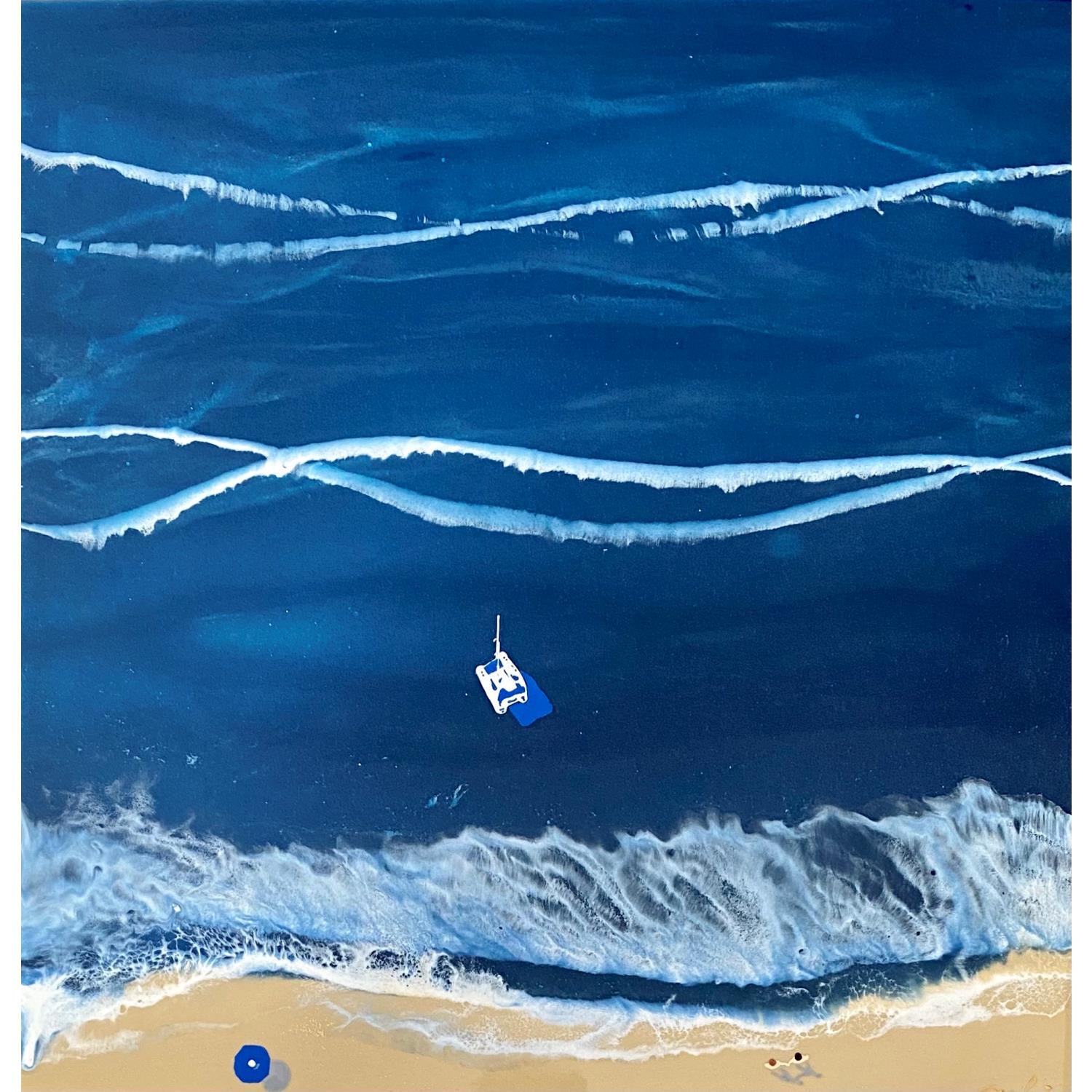 El artista utilizó las técnicas Acrílico, Resina para crear esta pintura Pequeño formato sobre Dibon de estilo Figurativo sobre los temas Marine, Minimalista, Paisajes.