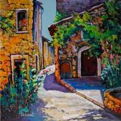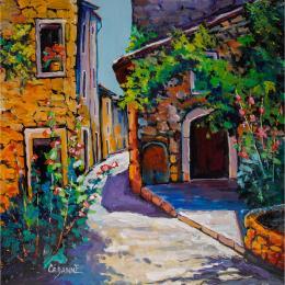 Esta obra de arte contemporáneo única y original "Vieilles pierres et roses trémières" fue realizada por el artista contemporáneo Cédanne.