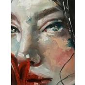 El artista utilizó las técnicas Acrílico, Aceite para crear esta pintura Pequeño formato sobre Lienzo de estilo Figurativo sobre el tema Retrato.