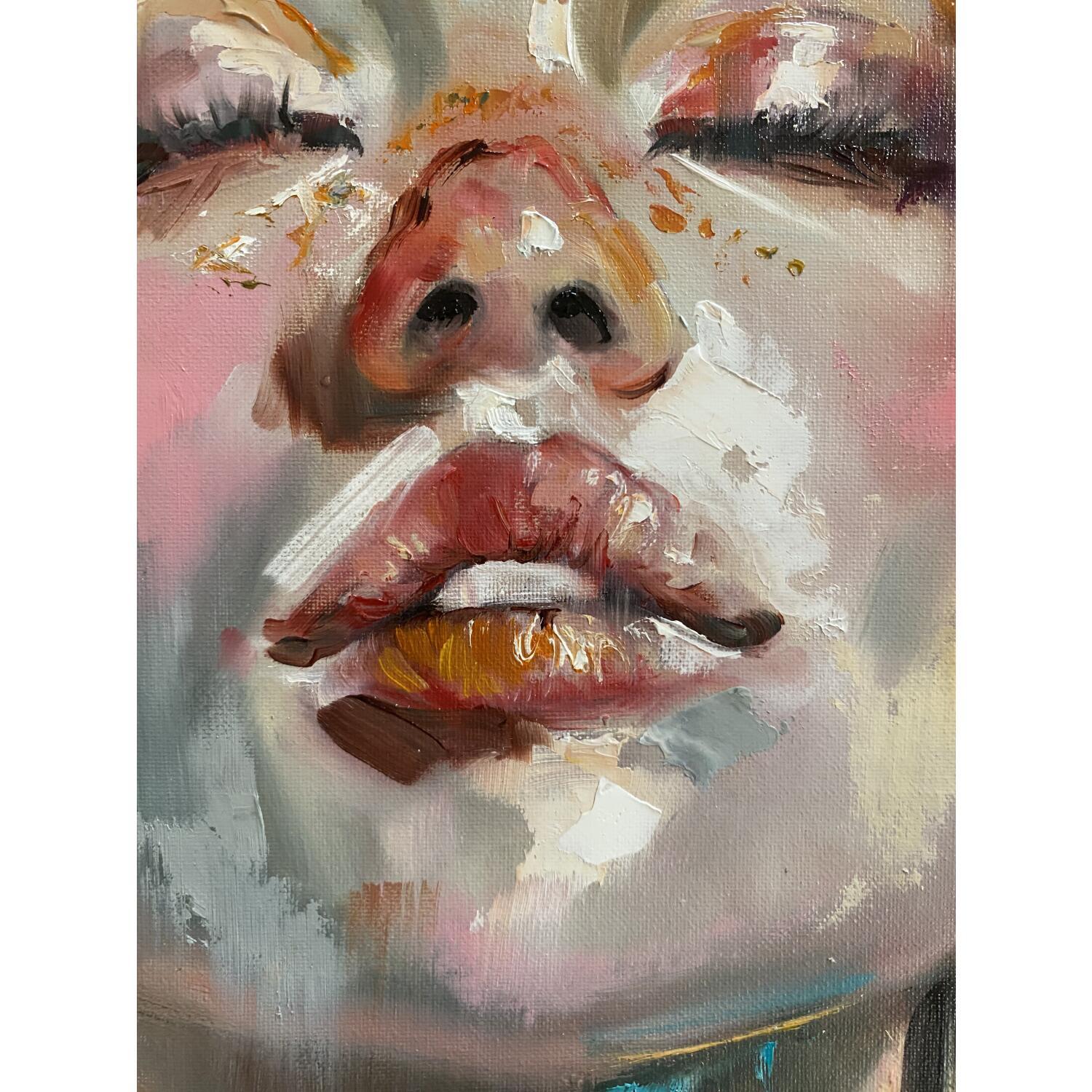 El artista utilizó las técnicas Acrílico, Aceite para crear esta pintura Pequeño formato sobre Lienzo de estilo Figurativo sobre el tema Retrato.