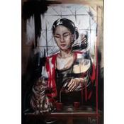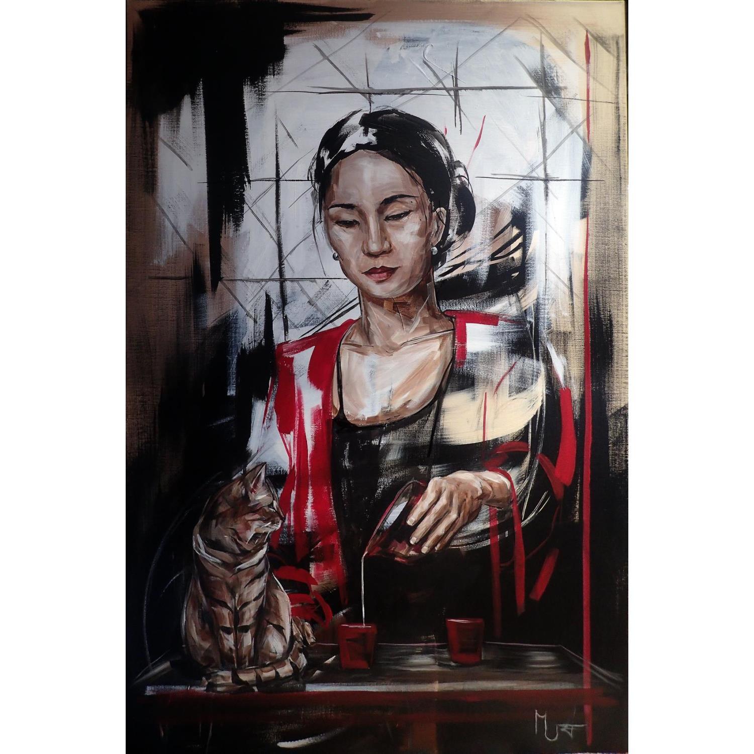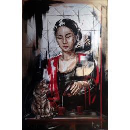 El artista utilizó la técnica Acrílico para crear esta pintura Large formato sobre Lienzo de estilo Figurativo sobre los temas Retrato, Life style.
