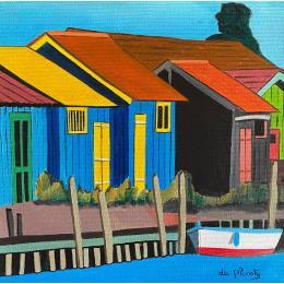 Esta obra de arte contemporáneo única y original "Cabanes d’Oléron et Barque" fue realizada por el artista contemporáneo Du Planty Anne.