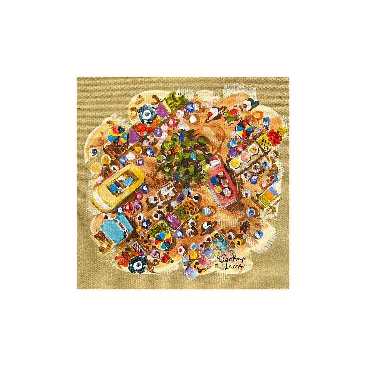 El artista utilizó la técnica Acrílico para crear esta pintura Pequeño formato sobre Lienzo de estilo Figurativo sobre los temas Urbano, Life style.