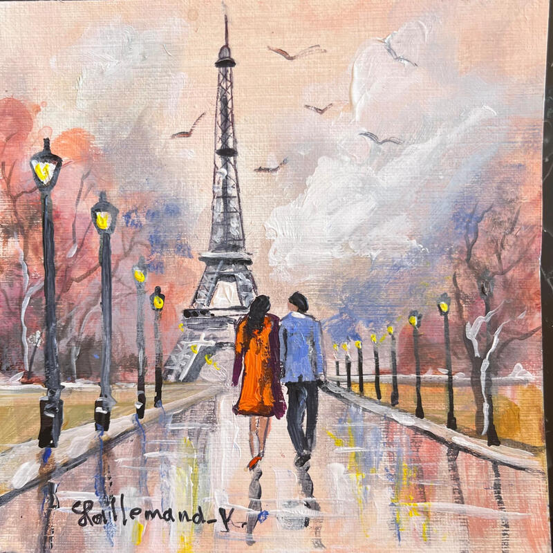 Promenade à deuxPintura Promenade à deux por Lallemand Yves | Pintura Figurativo Urbano Acrílico