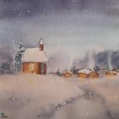 Winter EveningPintura Winter Evening por Khomyakova  Liliya  | Pintura Figurativo Acuarela