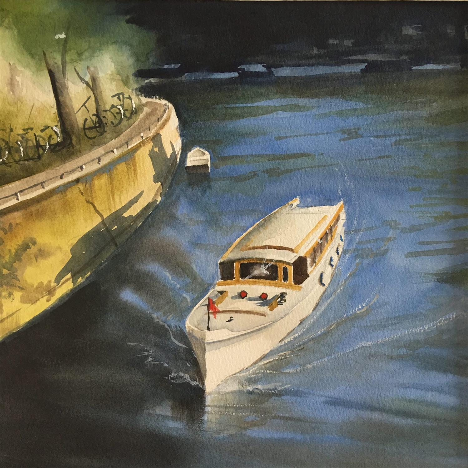 Pintura Boat trip por Min Jan | Pintura Figurativo Paisajes Acuarela