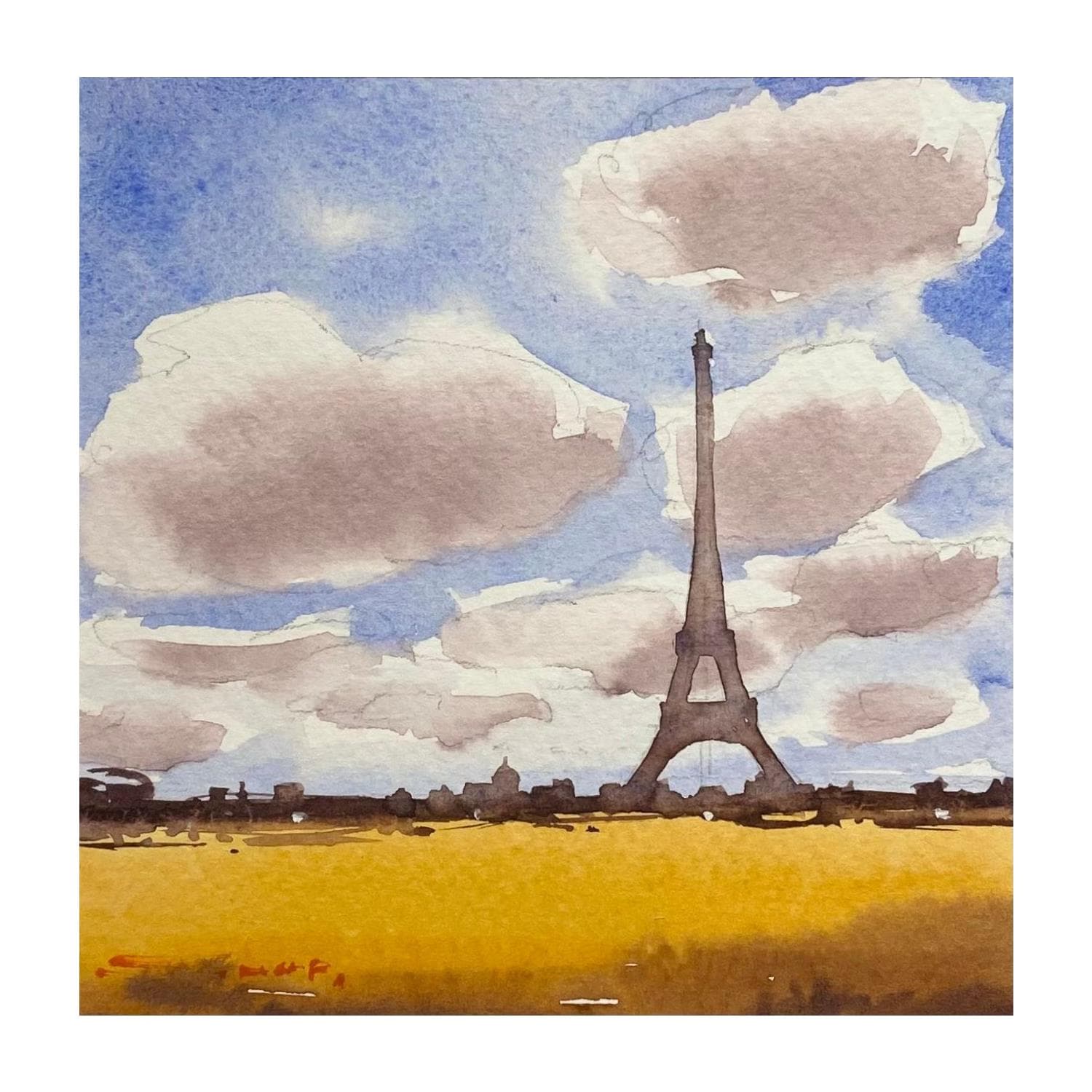 Esta obra de arte contemporáneo única y original "Eiffel Tower in Early Autumn" fue realizada por el artista contemporáneo Dandapat Swarup.