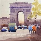 Esta obra de arte contemporáneo única y original "Strolling around Arc de triomphe II" fue realizada por el artista contemporáneo Dandapat Swarup.