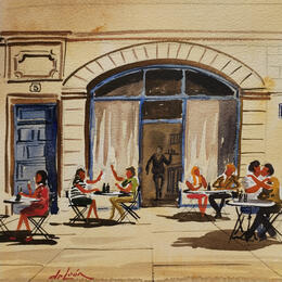 Pintura Café por De León Lévi Marcelo | Pintura Figurativo Urbano Acuarela