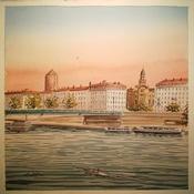 Pintura Pont Guillotière por De León Lévi Marcelo | Pintura Figurativo Urbano Acuarela