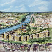 Angers Château panorama Pintura Angers Château panorama  por Hoffmann Elisabeth | Pintura Figurativo Urbano Acuarela