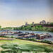 El artista utilizó la técnica Acuarela para crear esta pintura Pequeño formato sobre Papel de estilo Figurativo sobre el tema Urbano.