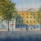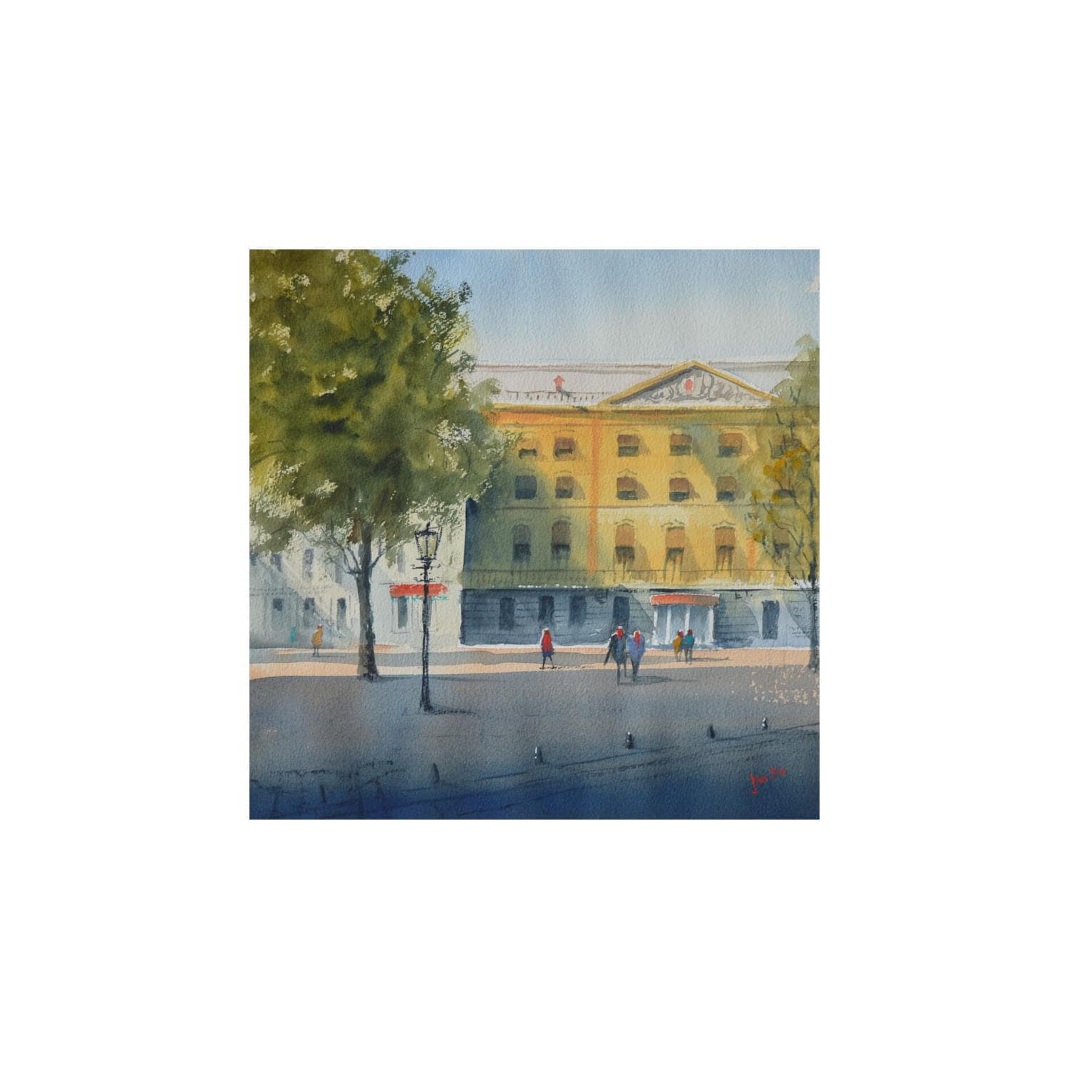 Pintura Lange Voorhout Den Haag por Min Jan | Pintura Figurativo Urbano Acuarela