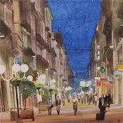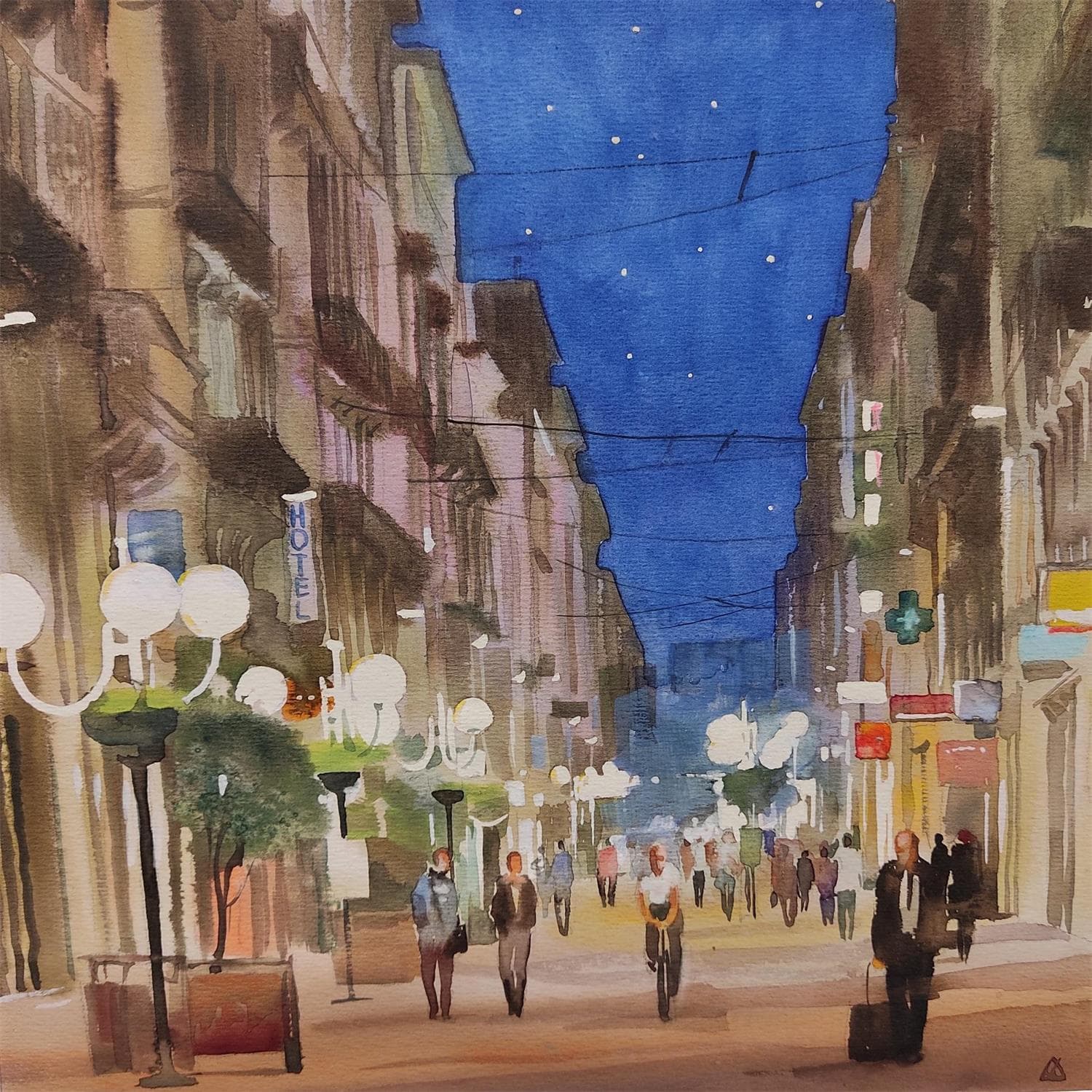 Pintura Lyon - N35 por Khodakivskyi Vasily | Pintura Figurativo Urbano Acuarela