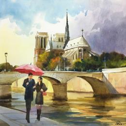 El artista utilizó la técnica Acuarela para crear esta pintura Pequeño formato sobre Papel de estilo Figurativo sobre el tema Urbano.