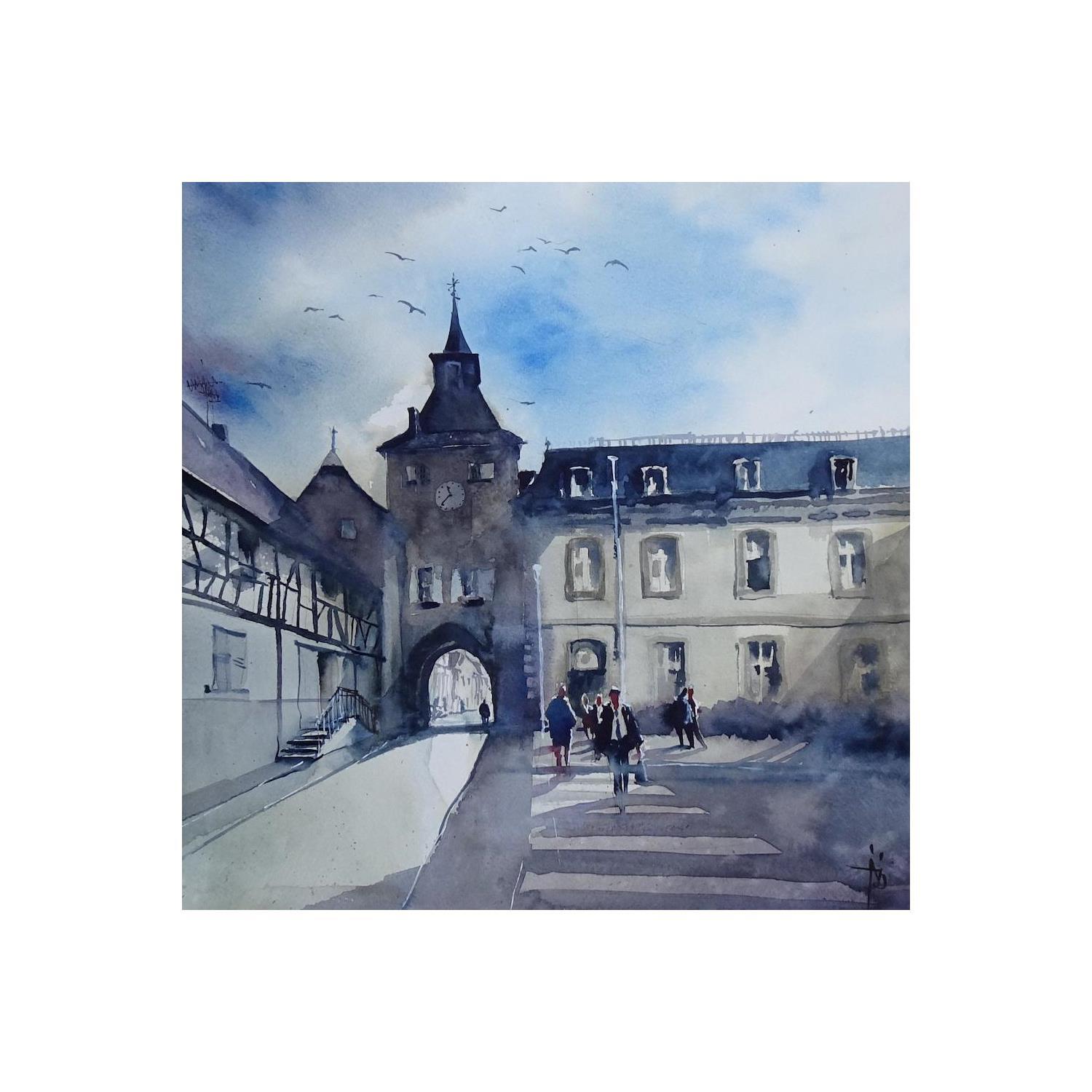 En passant par la mairie Pintura En passant par la mairie  por Abbatucci Violaine | Pintura Figurativo Acuarela