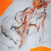 El artista utilizó diferentes técnicas para crear esta pintura Pequeño formato sobre Papel de estilo Figurativo sobre el tema Desnudo.