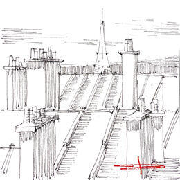 El artista utilizó las técnicas Ink, Acuarela para crear esta pintura Pequeño formato sobre Papel de estilo Figurativo sobre los temas Arquitectura, Urbano.