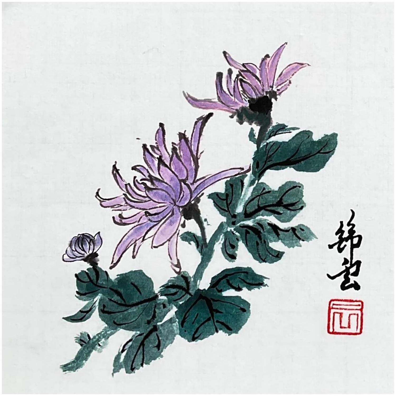 Pintura Chrysanthème por Tayun | Pintura Figurativo Naturalezas muertas Ink