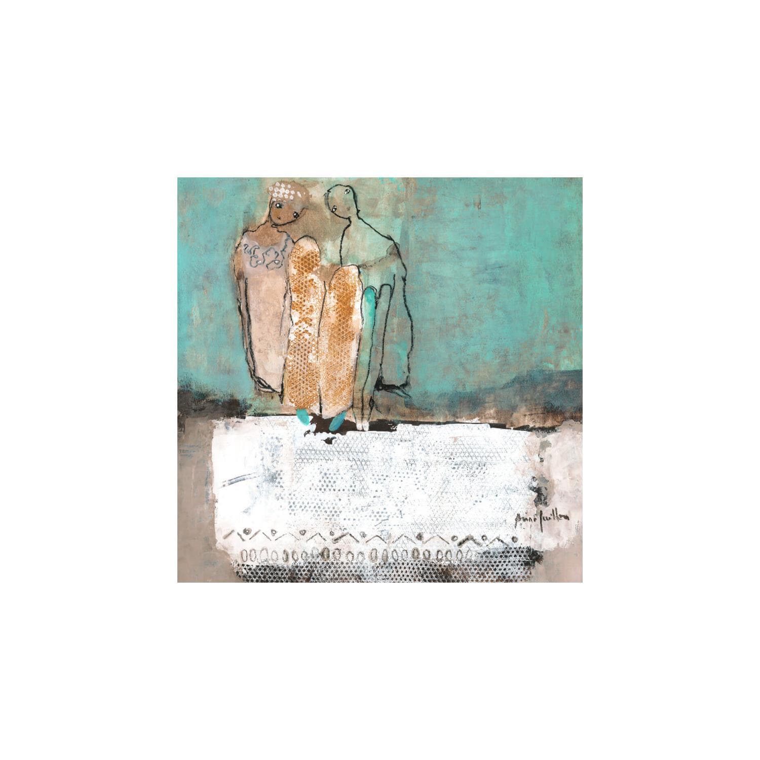 Born to teacher parents, Anne traveled the world with them for much of her childhood. After returning to France to study economics and finance, she worked abroad for several years. On her return in 1997, she decided to take a course in decorative painting in Paris and began creating furniture and objets d'art. Established in the Hérault region since 2001, she recently opened her own studio in Pézenas, where she creates her pictorial works. The language of materials and freedom of execution are the driving forces behind her art.