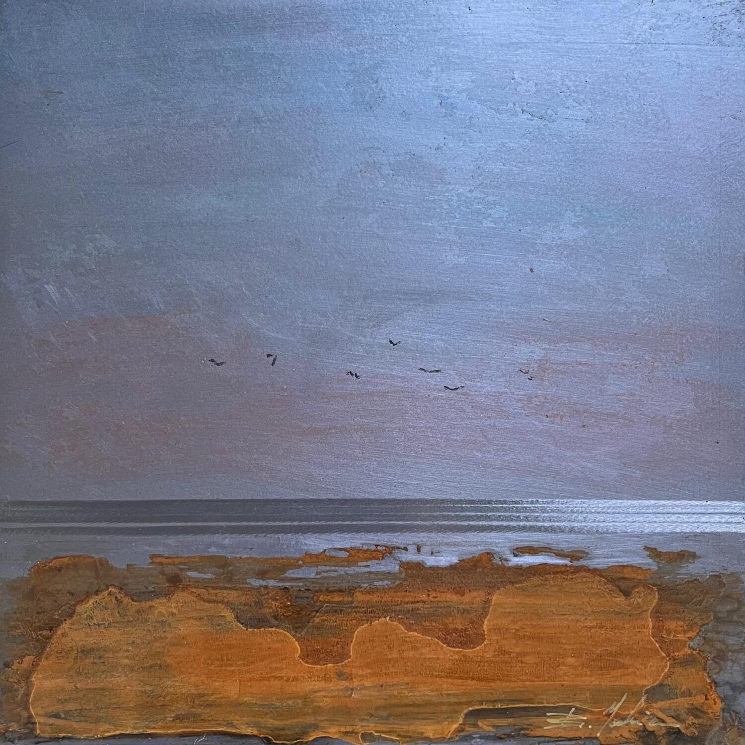 Pintura Les goélands  por Mahieu Bertrand | Pintura Figurativo Paisajes Metal