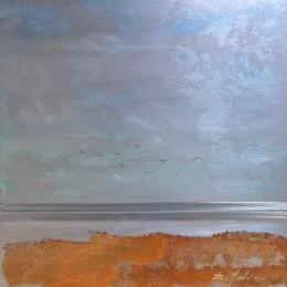 Pintura Les goélands  por Mahieu Bertrand | Pintura Figurativo Paisajes Metal