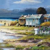 Pintura Antiguas casetas por Cabello Ruiz Jose | Pintura Impressionism Paisajes Aceite