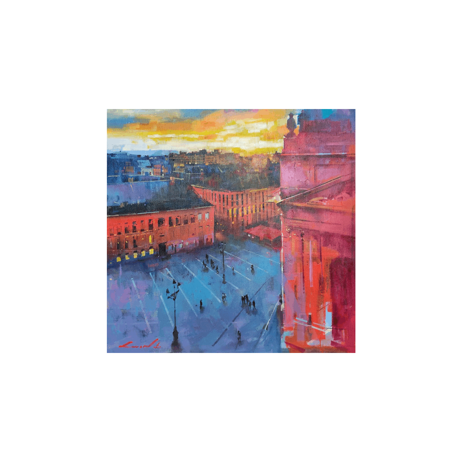 Pintura Soleil couchant sur la Grand'Place por Man Kwon Young | Pintura