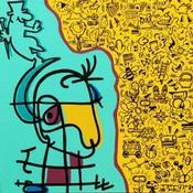 El artista utilizó las técnicas Acrílico, Posca para crear esta pintura Pequeño formato sobre Tablero de lienzo de estilo Pop art sobre el tema Iconos pop.