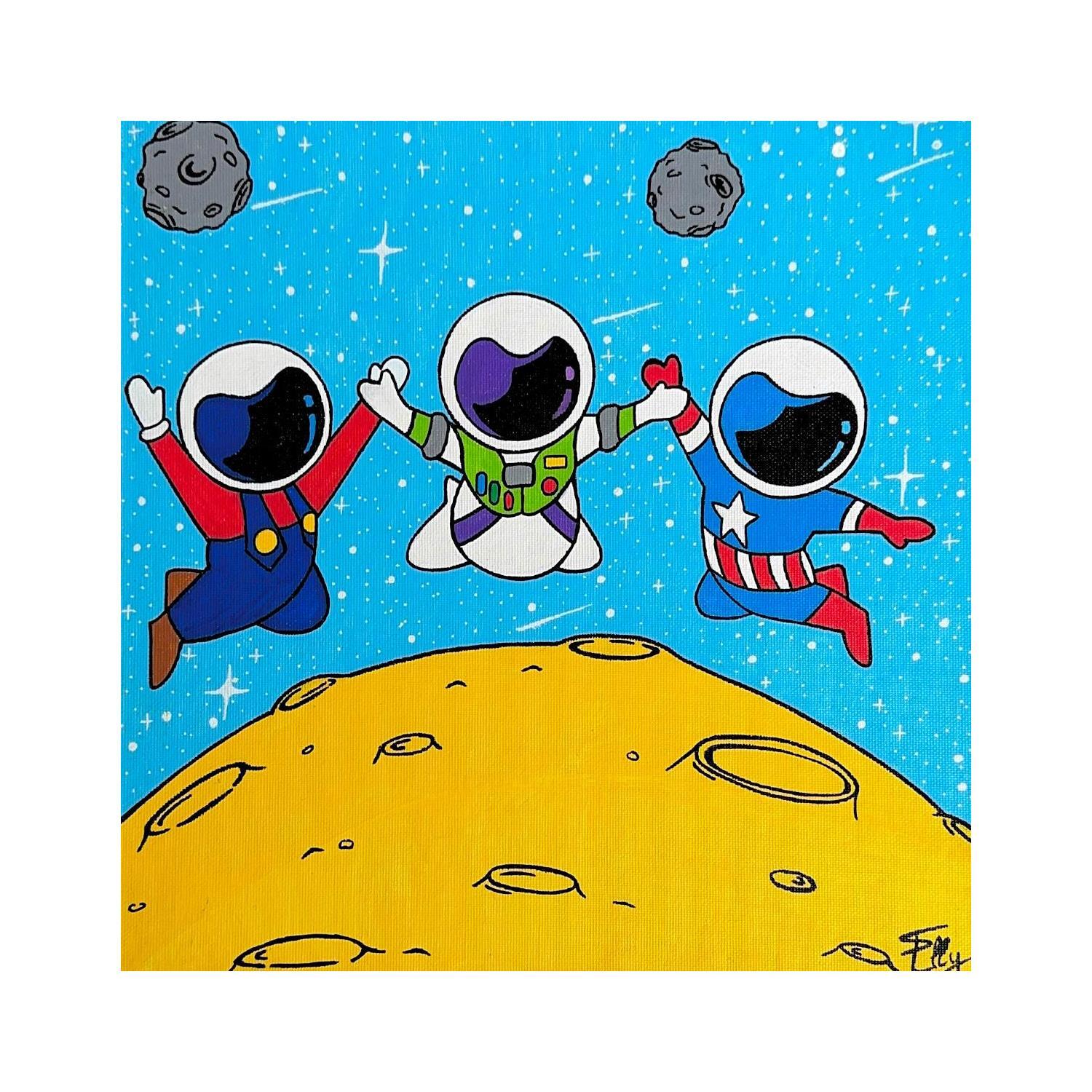 El artista utilizó la técnica Acrílico para crear esta pintura Pequeño formato sobre Tablero de lienzo de estilo Pop art sobre el tema Iconos pop.