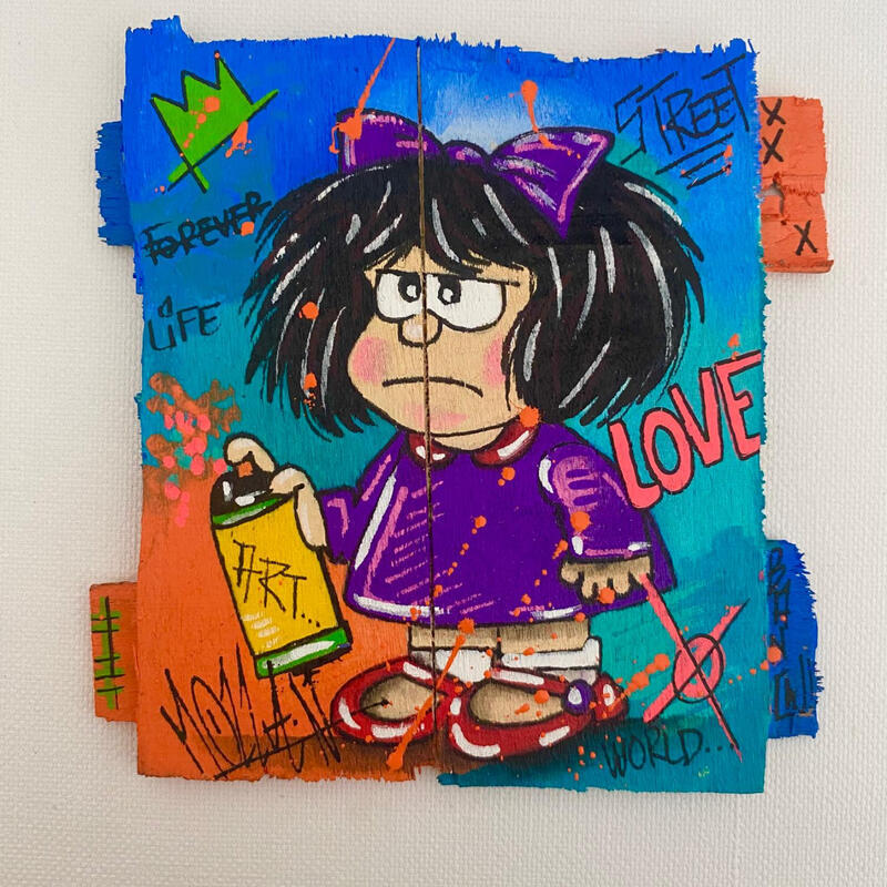 Esta obra de arte contemporáneo única y original, «F1 No Name 10019-20737-20260212-2», ha sido realizada por la artista contemporánea Molla Nathalie. La artista ha utilizado las técnicas acrílico y Posca para crear esta pintura de pequeño formato sobre madera, de estilo pop art, con el tema Iconos pop.