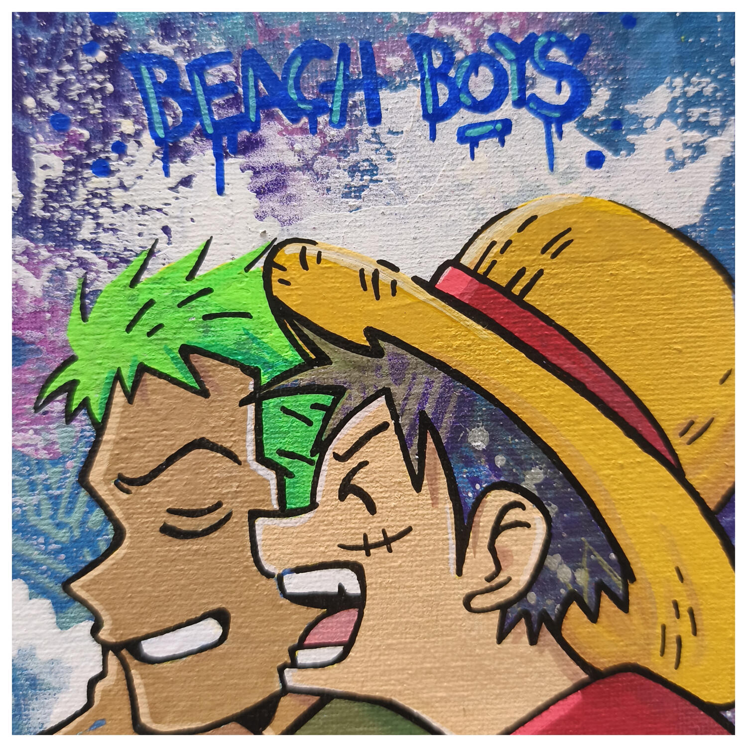 Esta obra de arte contemporáneo única y original, titulada «Beach boys», es obra del artista contemporáneo Rocky Chaplin. El artista ha utilizado diferentes técnicas para crear este cuadro de pequeño formato y estilo singular.