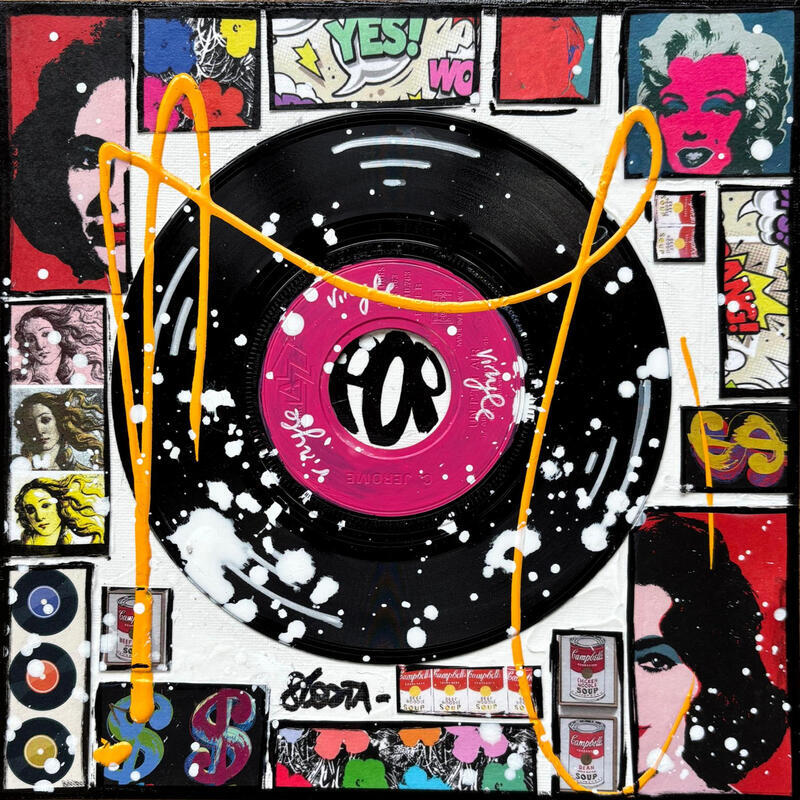 Pintura Pop vinyle por Costa Sophie | Pintura Pop art Iconos pop Acrílico Collage Supraciclaje