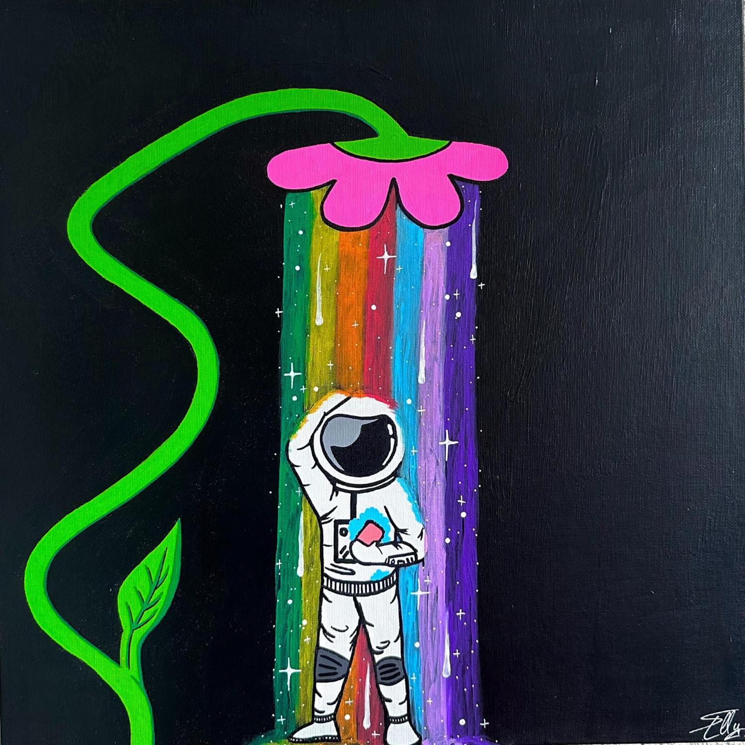 Esta obra de arte contemporáneo única y original "Rainbow shower" fue realizada por el artista contemporáneo Elly.