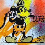 El artista utilizó las técnicas Graffiti, Cartón para crear esta pintura Pequeño formato sobre Cartón de estilo Pop art sobre el tema Iconos pop.