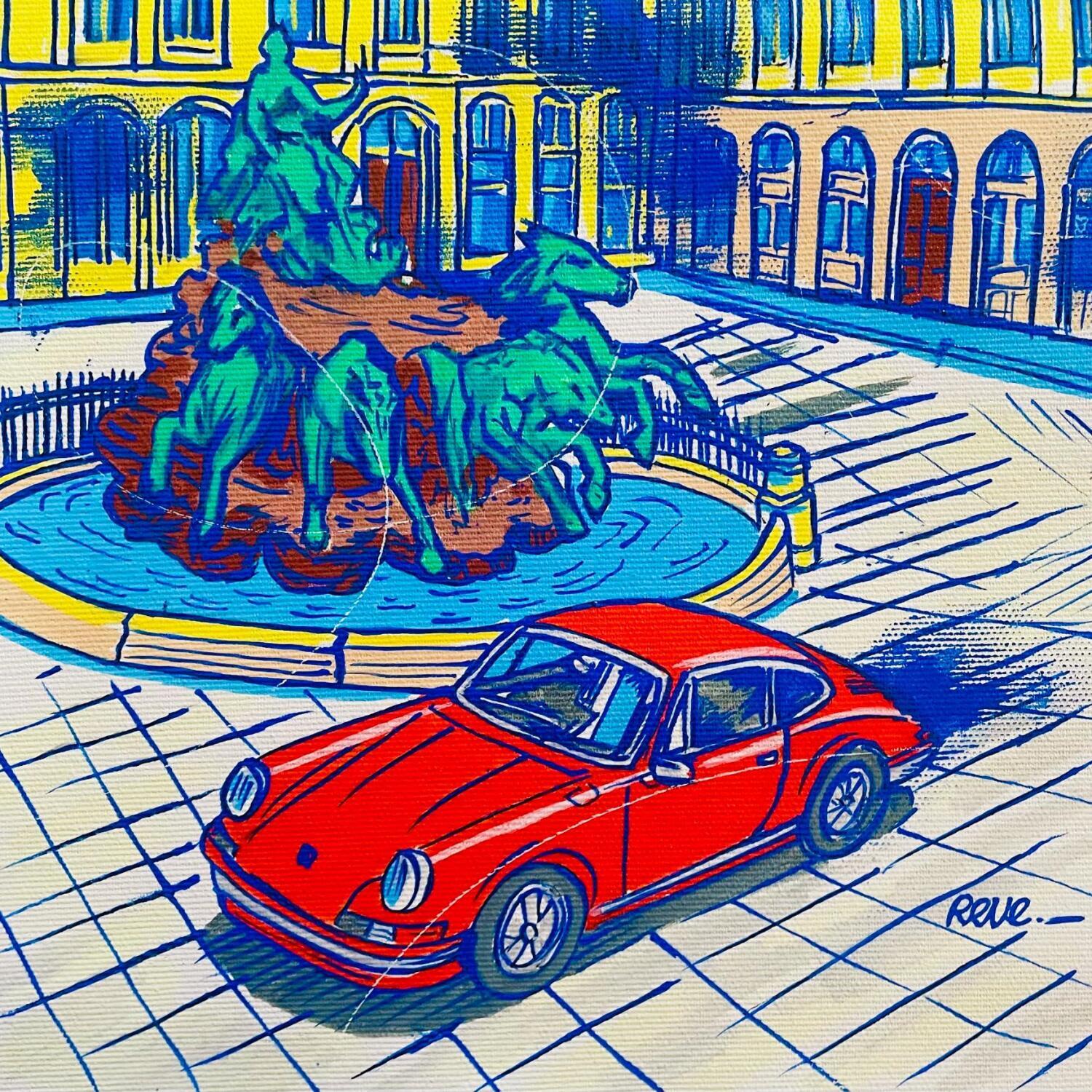 Esta obra de arte contemporáneo única y original "Porsche retro" fue realizada por el artista contemporáneo Revel. El artista utilizó diferentes técnicas para crear esta pintura Pequeño formato de estilo Pop art sobre el tema Iconos pop.