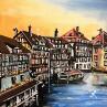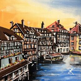 Esta obra de arte contemporáneo única y original "Coucher de soleil sur le pont Saint-Martin à Strasbourg" fue realizada por el artista contemporáneo Touras Sophie-Kim .
