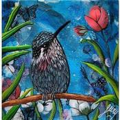 El artista utilizó las técnicas Acrílico, Pigmentos, Marble powder para crear esta pintura Pequeño formato sobre Tablero de lienzo de estilo Tema sobre los temas Animales, Naturaleza.