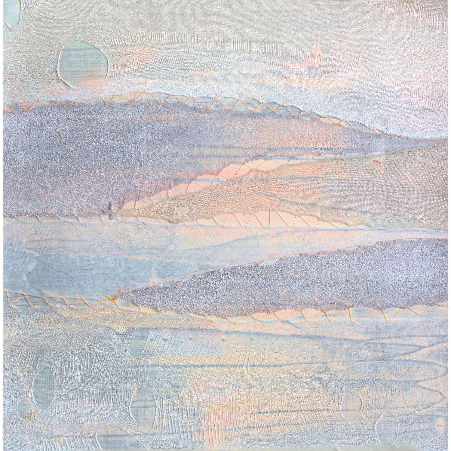 L'artiste a utilisé les techniques Acrylique, Textile pour créer cette peinture petit format sur Toile de style Abstrait sur le thème Paysages.