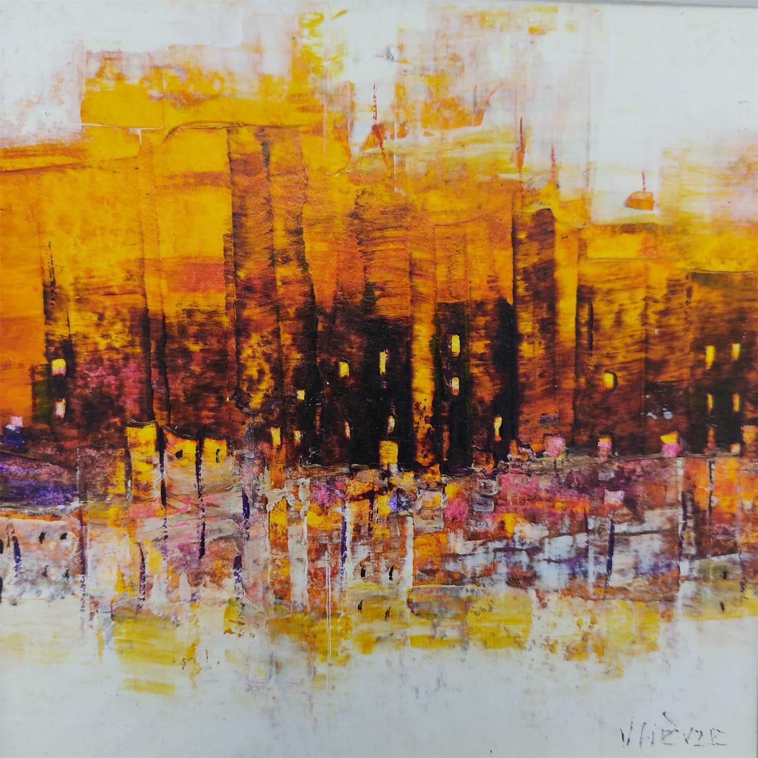 Peinture Soleil couchant sur la baie par Fièvre Véronique | Tableau Abstrait Urbain Acrylique