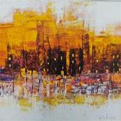 Soleil couchant sur la baiePeinture Soleil couchant sur la baie par Fièvre Véronique | Tableau Abstrait Urbain Acrylique