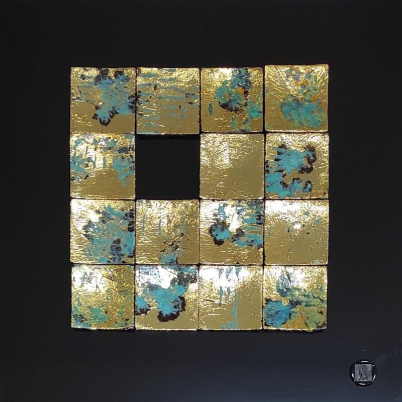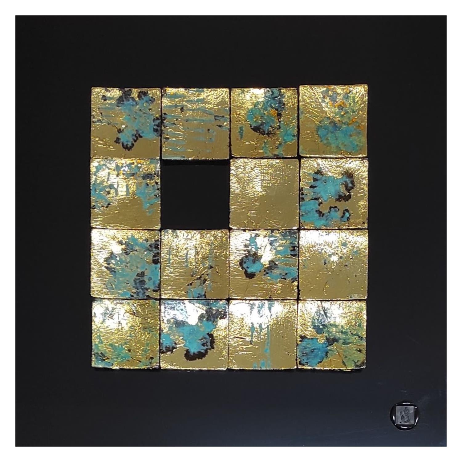 L'artiste a utilisé la technique Collage pour créer cette peinture petit format sur Dibon de style Abstrait sur le thème Minimaliste.