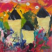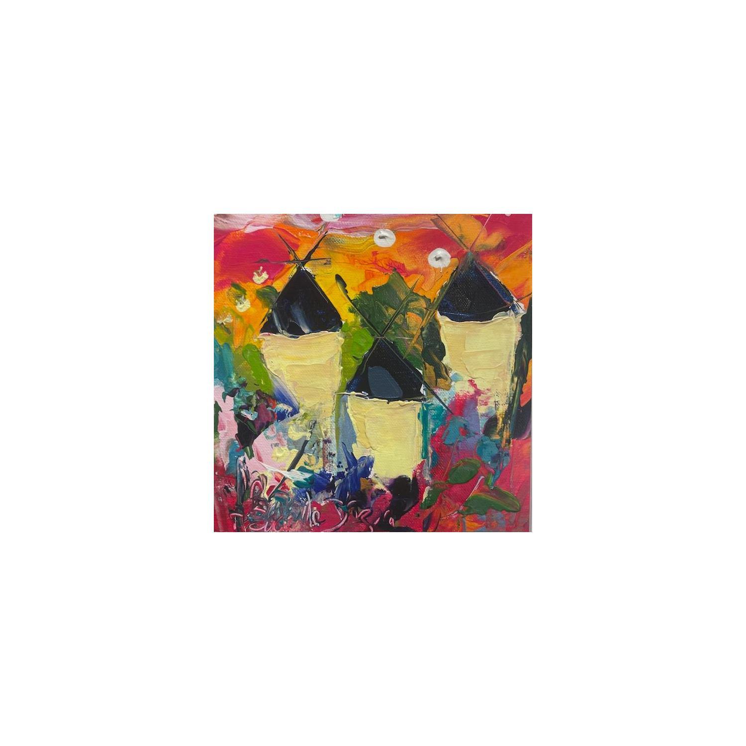 Cette oeuvre d'art contemporain unique et originale "Sur la route des moulins" a été réalisée par l'artiste contemporain Bastide d´Izard Armelle.