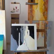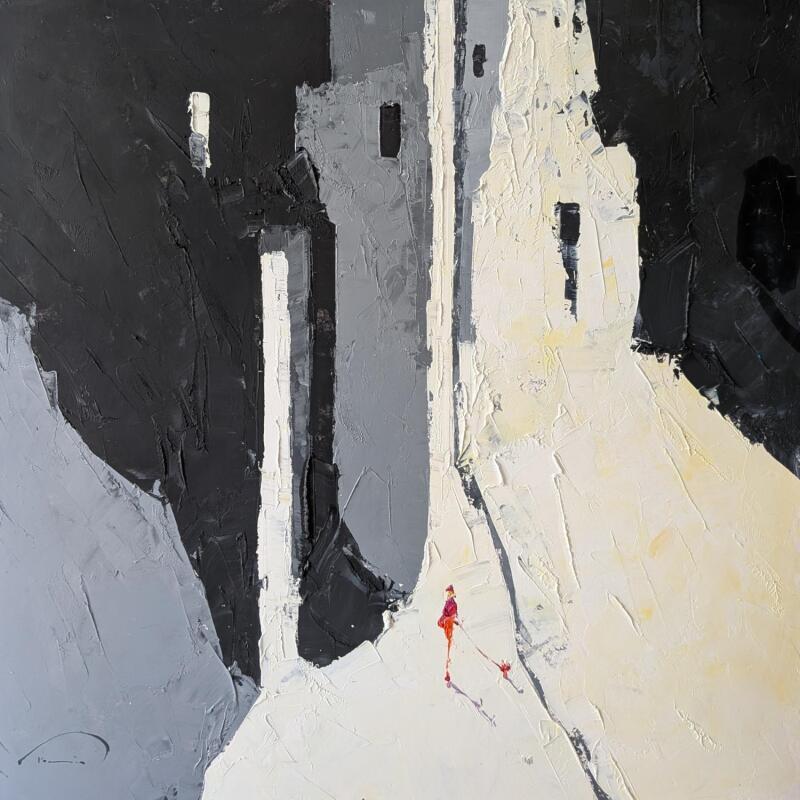 Peinture Ma maison par Tomàs | Tableau Abstrait Noir & blanc Huile