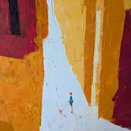 L'artiste a utilisé la technique Huile pour créer cette peinture petit format sur Papier de style Abstrait sur les thèmes Scènes de vie, Urbain.