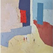 L'artiste a utilisé la technique Huile pour créer cette peinture petit format sur Papier de style Abstrait sur les thèmes Urbain, Scènes de vie.