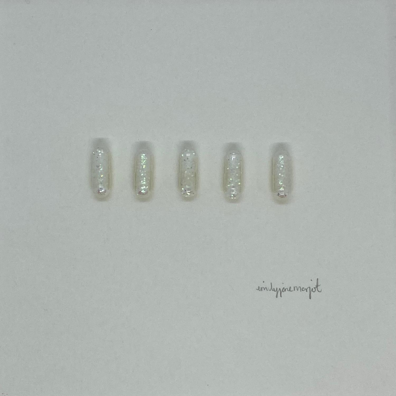 Cette oeuvre d'art contemporain unique et originale "white pills" a été réalisée par l'artiste contemporain Marjot Emily Jane .