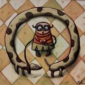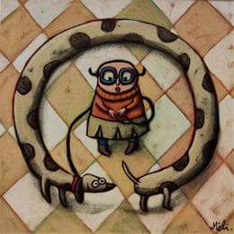 L'artiste a utilisé la technique Acrylique pour créer cette peinture petit format sur carton de style Art naïf sur les thèmes animaux, scènes de vie.