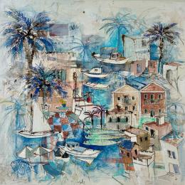 L'artiste a utilisé les techniques Acrylique, Collage, Encre, Pastel, Aquarelle pour créer cette peinture grand format sur Papier de style Art naïf sur le thème Marine.